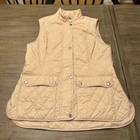 Add the Barbour Otterburn Gilet Vest to your wardrobe for a classic and stylish look. This vest features a quilted design with a diamond pattern and the Barbour logo as an accent. The vest has both a zip and snap closure, full zip, and pockets for convenience. Ideal for casual occasions during the summer, fall, or spring, this vest has a polyamide outer shell, lining material, and insulation material for durability. The sleeveless design and regular fit make it comfortable to wear. This vest is a perfect addition to any wardrobe and can be worn with a variety of outfits.