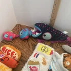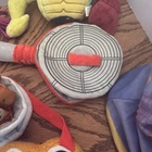 One dumpling , suitcase, fish eating smaller fish, hot dog, soup cup , guitar motley crew, red sweater crinkle, queen grrrtrude pup-pet, torso of terror, garbage gourmet skillet, The BarkBox dog toys lot includes 8 pieces of stuffed toys designed for small and extra small dogs. Made from plush material, these toys are filled with squeakers to keep your furry friend entertained and engaged. Each toy is designed by the popular brand BarkBox and manufactured in China, providing high-quality products for your pet to enjoy. Perfect for providing stimulation and fun for your small or XS-sized dog, this lot of toys is sure to keep them entertained for hours.