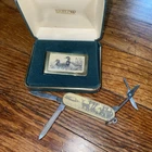 This is a vintage Barlow pocketknife and money clip set. The pocketknife is factory manufactured and comes with a blade and other tools. The Barlow brand is known for producing high-quality knives, making this a great addition to any knife collection. The money clip adds a practical touch to the set, making it a great gift for someone who enjoys both style and functionality.