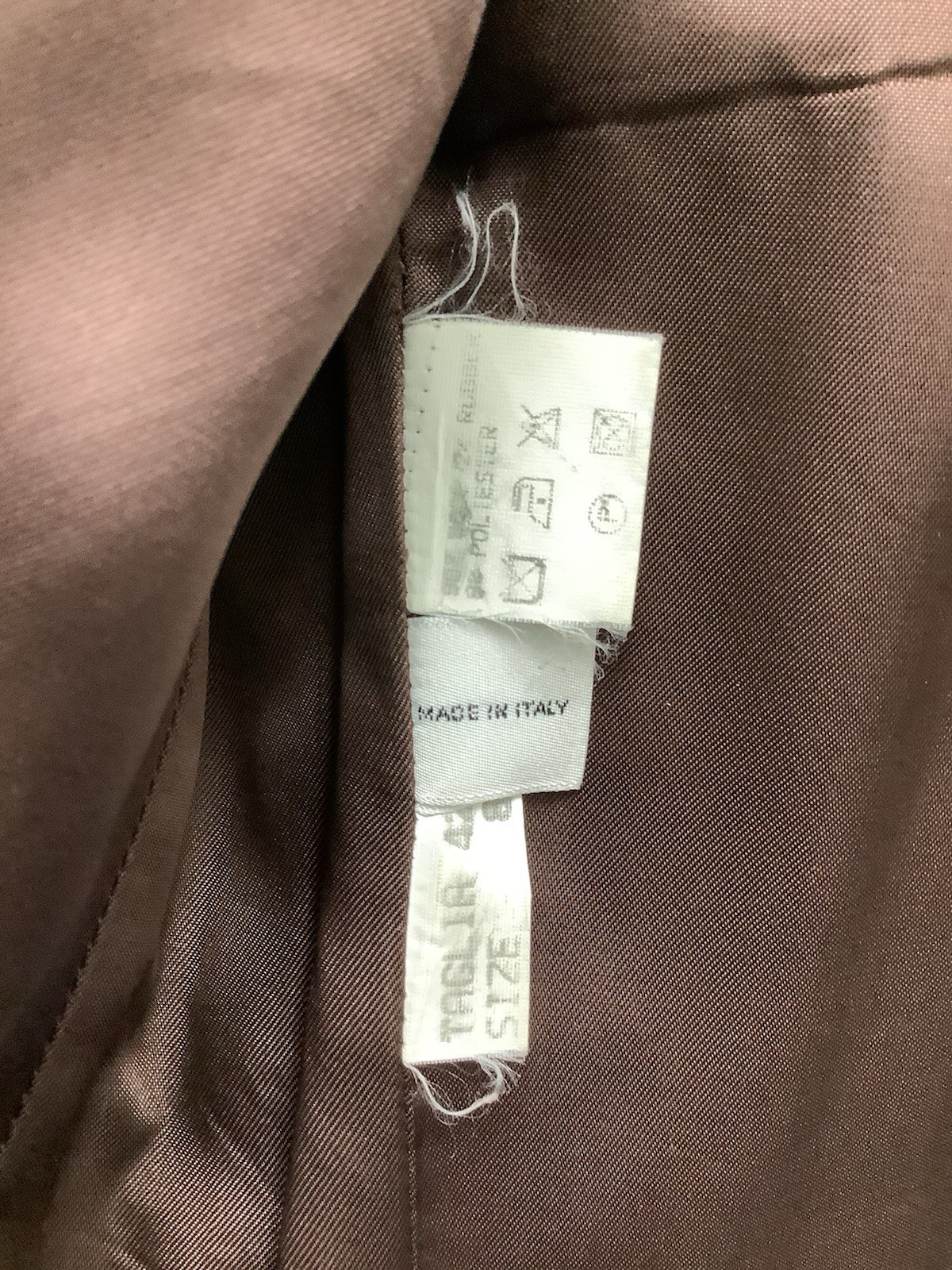 The Barneys New York Brown Suit Jacket in size 8 is a stylish and sophisticated addition to any wardrobe. Made in Italy from a luxurious blend of 90% wool, 2% rubber, and 8% polyester, this jacket exudes quality and elegance. The rich brown color and classic jacket style make it versatile for both men and women to wear. Perfect for formal occasions or adding a touch of refinement to a casual outfit, this designer piece is a must-have for those who appreciate timeless fashion. Chest 18.5” 27” length 15” sleeves 15” shoulders