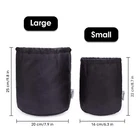 Barrel Drawstring Makeup Bag Travel Cosmetic Bag Large Toiletry Organizer Waterproof for Women (Large, Black) Product Details Color: Black Size: Large Brand: Narwey MPN: NW5019 UPC: Does not apply EAN: Does not apply Product Dimensions : 9.7 x 7.8 x 7.8 inches; 3.2 ounces Item model number : NW5019 Manufacturer : Narwey Country of Origin : China LARGE VERSION - Size 7.8"x7.8"x9.7/20x20x25 cm, weigh only 3.2 ounce, decent size without any bulkiness MULTIPLE ORGANIZED COMPARTMENTS - Large main compartment with 6 mesh pockets, 4 elastic bands keeps items organized well,easy to grab exactly what you need without digging Great for DAILY USE or TRAVEL - Easily fit more travel-size toiletries and large skin-care products such as lotion, cream, facial cleanser, foundation, concealer, mascara, eye shadow, powder, blush, lipstick, makeup brushes CONSISTENT QUALITY - Thick fabric, upgrade nice lining, double drawstring which is easy to close. Water-resistant fabric protects items from spills, easy to wipe down TRAVEL MUST HAVES For WOMEN - Each of these cosmetic pouch has vibrant color, as travel accessories it would be a great present for women