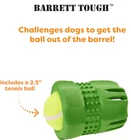 Barrett Tough Tennis Jumble Dog Toy for Large Dogs - Durable Rubber Barrel & Ball Combo, Virtually Indestructible Puzzle Toy with Textured Surface for Dental , 4 in Barrel & 2.5 in Ball Interactive Challenge: The Barrett Tough Tennis Jumble engages dogs by challenging them to retrieve the ball from the barrel, providing hours of stimulating playtime and exercise. Built for Large Dogs: Specifically designed for large breeds, this durable toy meets the needs of bigger pups who love to chew and play hard, ensuring long-lasting fun. Virtually Indestructible: Made from solid rubber, this toy is built to withstand tough play and heavy chewing, offering a reliable option for even the most enthusiastic dogs. Healthy Playtime: The textured surface helps massage your dog's teeth and gums, promoting oral while they play, making it a great addition to their toy collection. Includes Tennis Ball: The 4-inch barrel shaped toy comes with a 2.5-inch tennis ball, adding extra excitement and versatility to playtime, allowing for fetching and interactive games both indoors and outdoors.