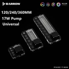 Barrow Distroplate Watercooling 120/240/360MM Universal Integrated Pump Waterway Board Computers Water Cooling Components Description: Universal water channel board solves the compatibility problem of dedicated water channel board products, you can replace the chassis solution, more convenient to apply inside the new chassis. Features: 1. Convenient installation: the appearance of the size of the 120MM width, the size and cold row and 12CM fan the same, through the back of the mounting threads, it is very easy to install in the chassis normal fan cold row position, the installation of the threaded mouth are embedded steel wire screw sleeve, can effectively reduce the potential risks caused by improper application of force. 2. High integration: the water circuit board factory integrated 17W water pump, reserved for a number of inlet and outlet interfaces, high degree of integration, the installation difficulty is greatly reduced, simple planning of the water circuit to complete the installation operation. 3. Appearance materials: the use of long life and more stable imported thickened transparent acrylic material, the cavity to increase the thickening to provide greater water storage capacity, the front panel for the CNC machined aluminum alloy, beautiful and sturdy, fine workmanship! Specification: * Type: Case Distro Plate * Condition: Full New * Material: Aluminum + Acrylic * Color: black/white * Thread: G1/4" * Default light type: 5V RGB * Dimension: Please refer to the dimension drawing * Available: 120/240/360mm * Usefulness: Desktop computer split water-cooling parts Package included: 1* waterway board ( 120/240/360mm ) Note: If the appearance and structure of the product are upgraded, no further notice will be given, and the actual product will prevail.