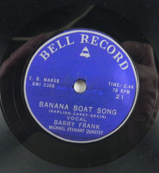 Barry Frank – Jamaica Farewell / Banana Boat Song 1957 7" 78RPM w/Pic Sleeve Vinyl is in VG+ to EX (Excellent) condition. Please see photos. Label: Bell Records – 21 Format: Vinyl, 7", 45 RPM Country: US Released: 1957 Genre: Pop Style: Reduced shipping available when purchasing multiple records! Visit our store for more records like this!