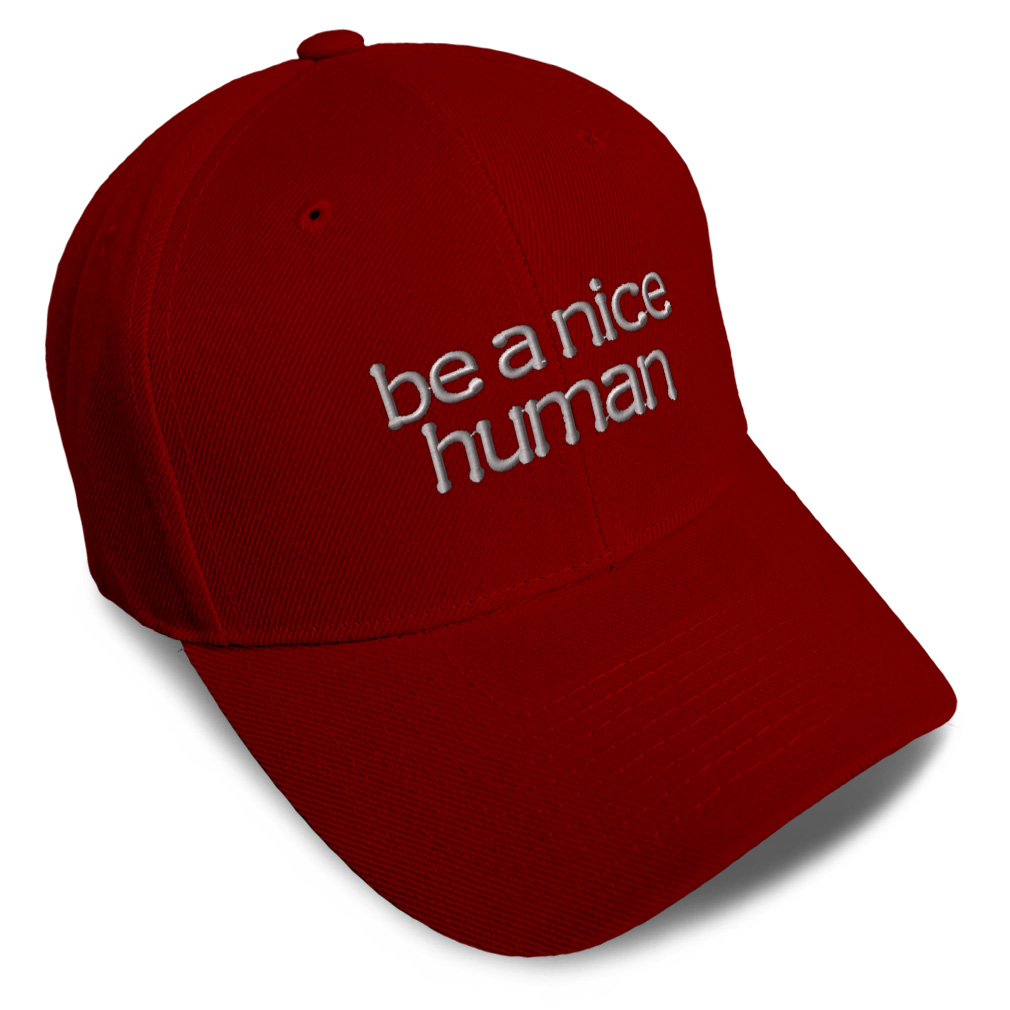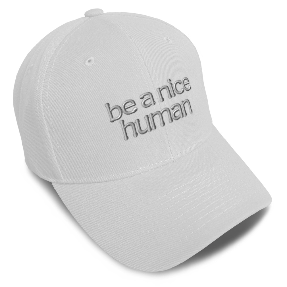 Unisex Structured Baseball Cap Classic never goes out of style! Our baseball caps will come everywhere with you and will take your outfit to the next level. Our caps are available in 18 colors, so we are sure you'll find the perfect one. GREAT GIFTS IDEA: Unforgettable and unique, our golf hats men and women are the perfect gift for birthdays, anniversaries, Christmas, Father’s Day, Mother’s Day or any other celebrations. Perfect for someone who is looking for Humanity hat, Person baseball cap, Behavior mens hat, Humankind hats for men, dad hat, hats for women, inspirational gift accessories, motivational gift gifts for men, Human gifts for dad, Nice gifts for husband Humanity apparel, Person shirt. These mens hat and baseball hats for women are suitable for exercise such as running, casual outings to go to the beach, to work, to the club, to the mall or an everyday wear. You can make this mom hat or dad hat one of a kind with our custom option with thousands of designs available to you. Simply add your personalized text and choose among various fonts and colors! Our embroidery will continue to look great after many years, it is carefully made in our lab in Tampa, Florida. The design's text reads: be a nice human. BEST CLASSIC BASEBALL CAP! ** , , , , PAYMENT TERMS