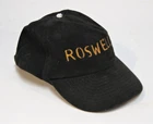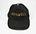 Baseball Cap "Roswell" Black Strap Back made by Game Face. Worn. The little black ‘button’ cover on the top is missing but I’d guess those can be fixed easy enough: