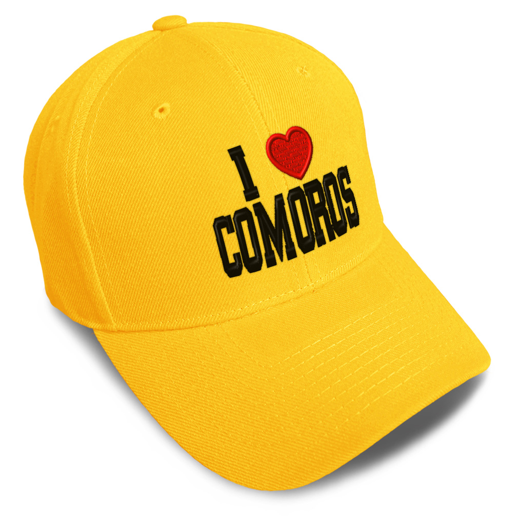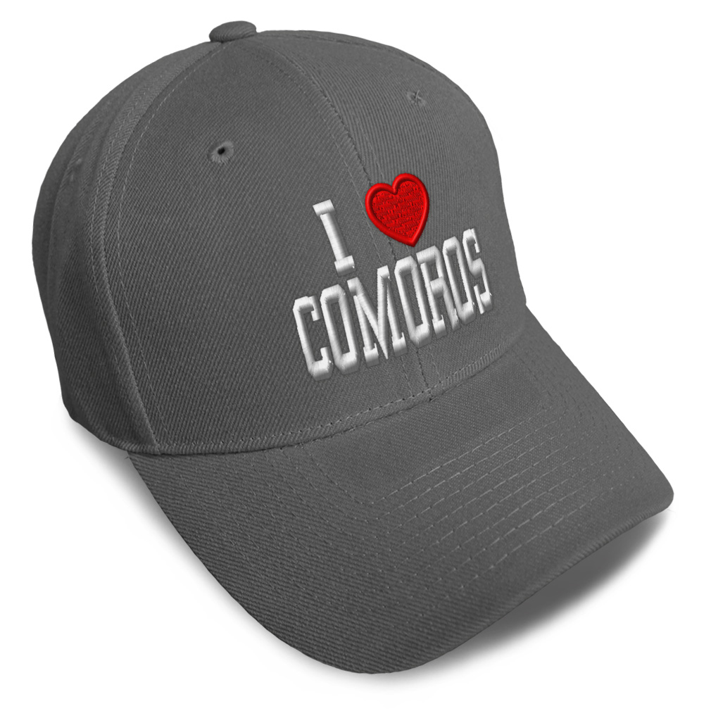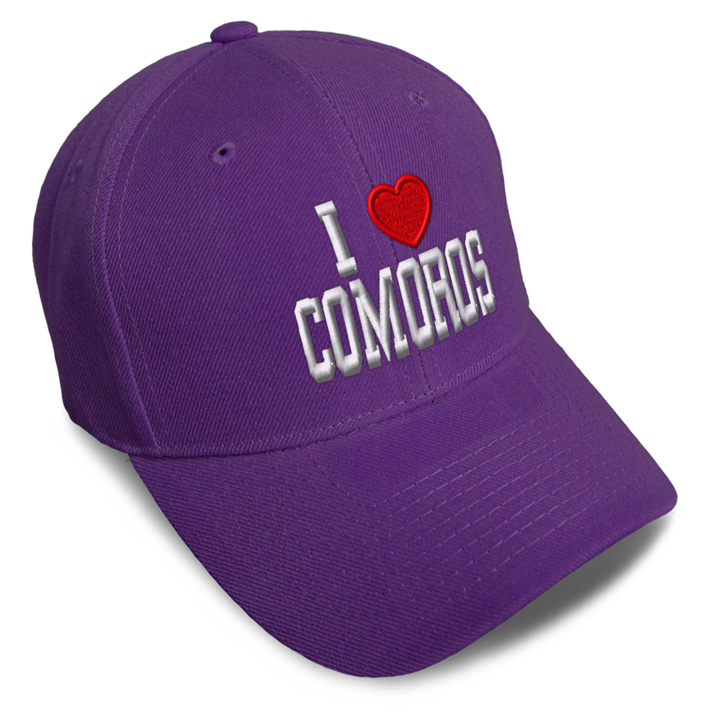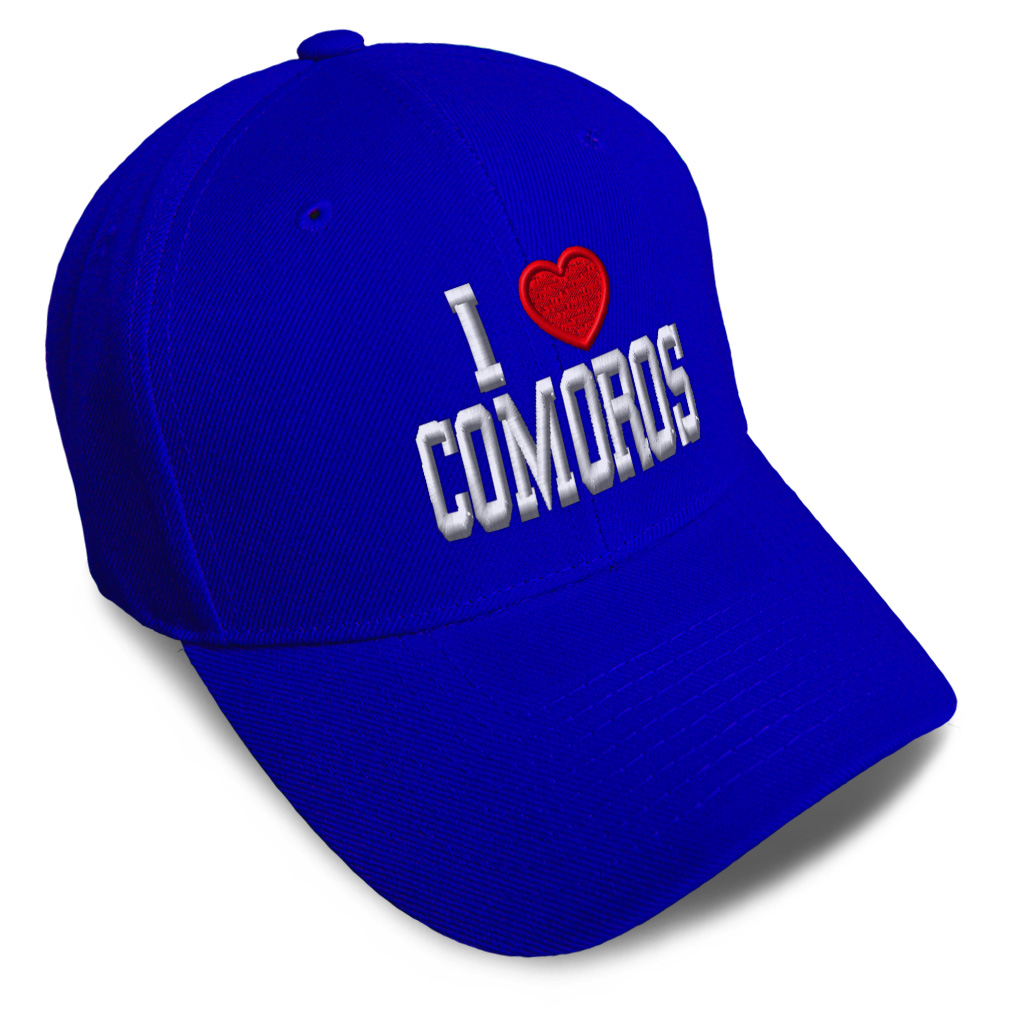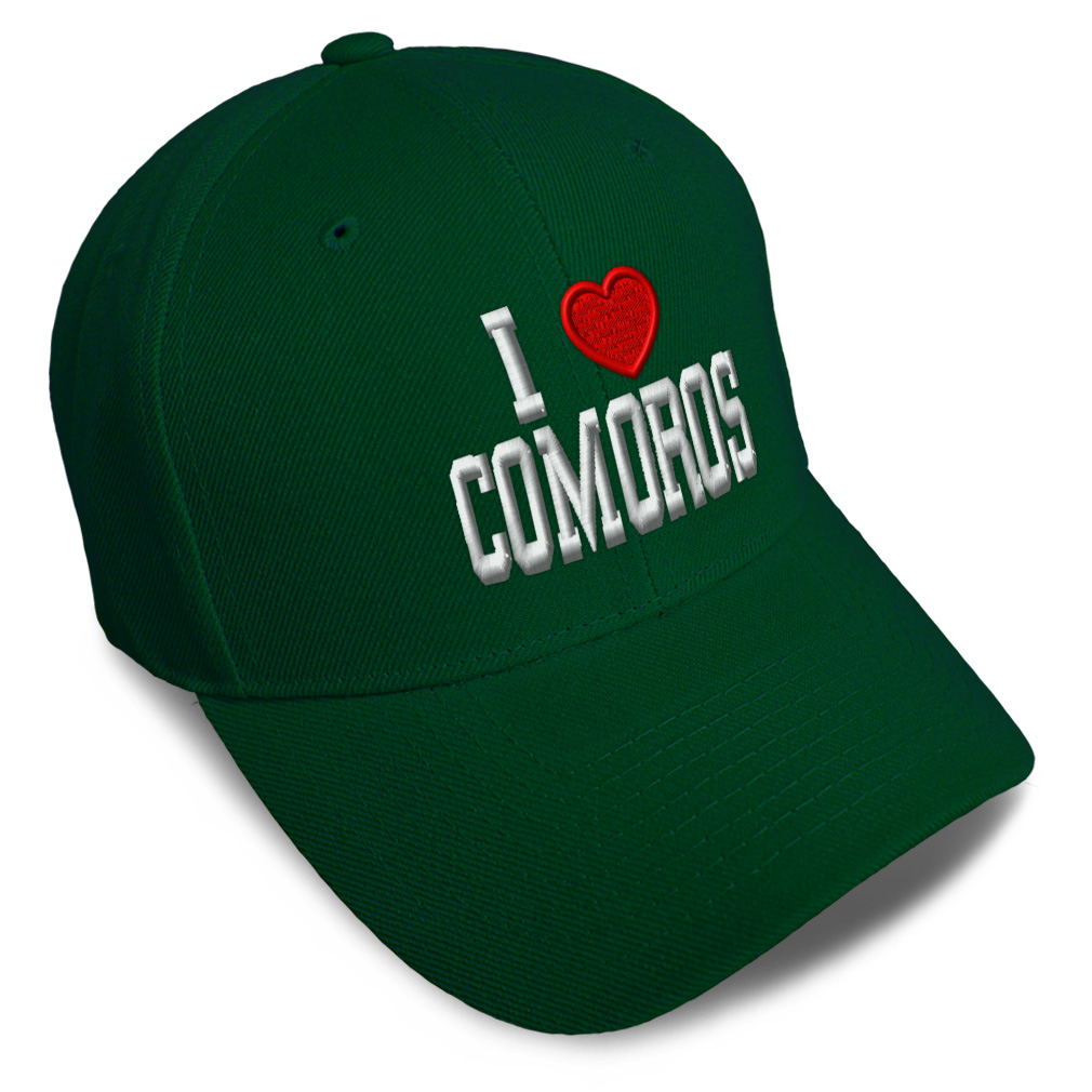 Unisex Structured Baseball Cap Classic never goes out of style! Our baseball caps will come everywhere with you and will take your outfit to the next level. Our caps are available in 18 colors, so we are sure you'll find the perfect one. GREAT GIFTS IDEA: Unforgettable and unique, our golf hats men and women are the perfect gift for birthdays, anniversaries, Christmas, Father’s Day, Mother’s Day or any other celebrations. Perfect for someone who is looking for Comoros hat, I Love baseball cap, Heart mens hat, I Heart Flag hats for men, Comoros Flag dad hat, Country Love hats for women, Country Pride accessories, gifts for men, Love gifts for dad, gifts for husband Comoros apparel, I Love shirt. These mens hat and baseball hats for women are suitable for exercise such as running, casual outings to go to the beach, to work, to the club, to the mall or an everyday wear. You can make this mom hat or dad hat one of a kind with our custom option with thousands of designs available to you. Simply add your personalized text and choose among various fonts and colors! Our embroidery will continue to look great after many years, it is carefully made in our lab in Tampa, Florida. The design's text reads: i love comoros. BEST CLASSIC BASEBALL CAP! ** , , , , PAYMENT TERMS