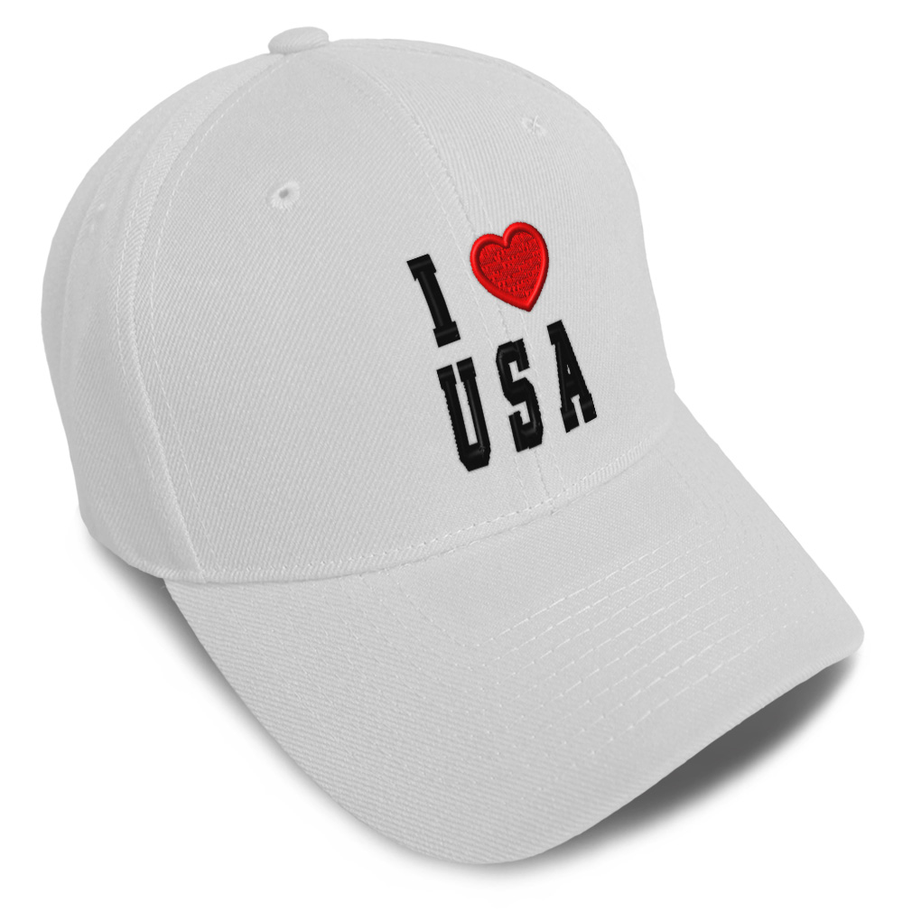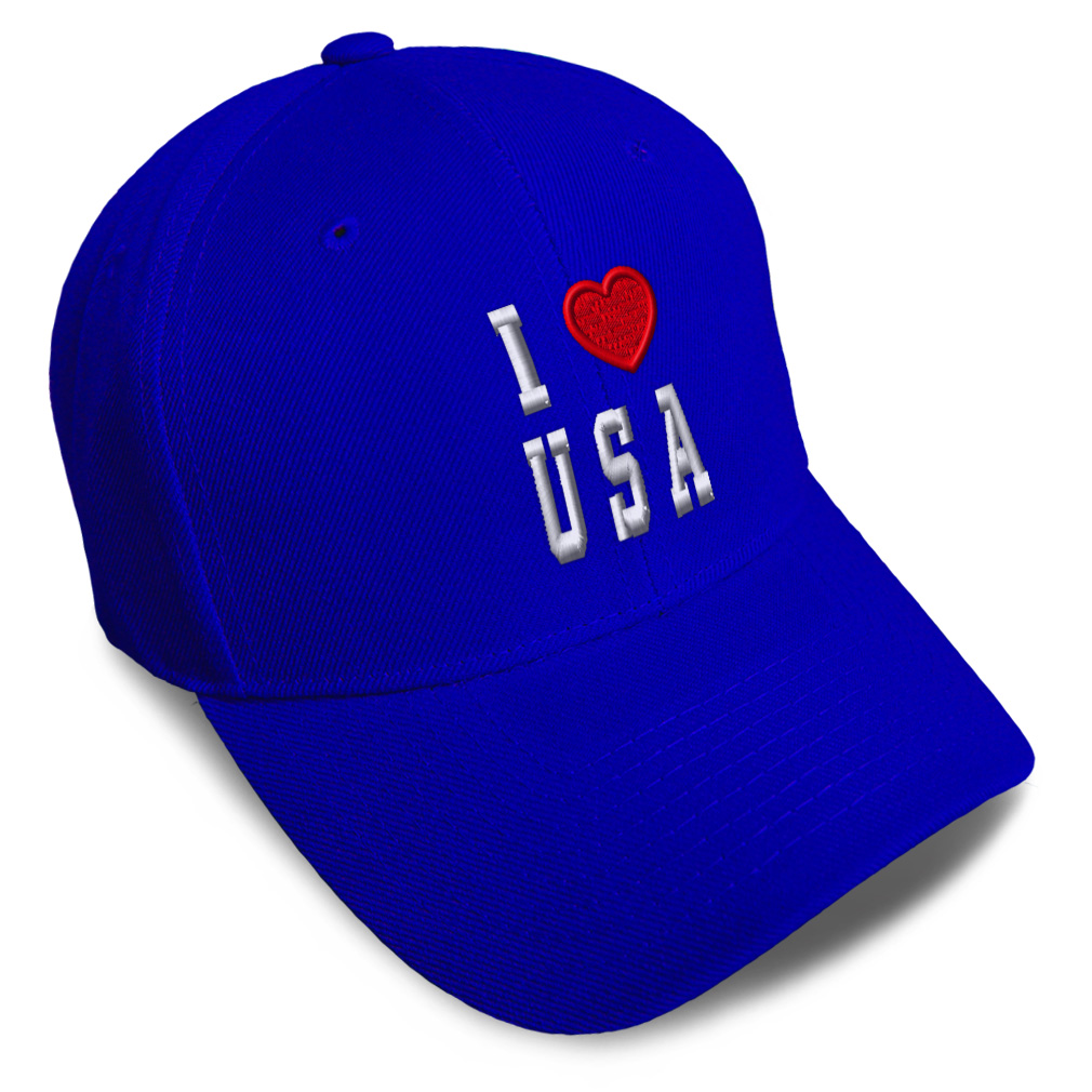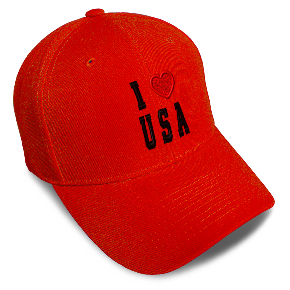 Unisex Structured Baseball Cap Classic never goes out of style! Our baseball caps will come everywhere with you and will take your outfit to the next level. Our caps are available in 18 colors, so we are sure you'll find the perfect one. GREAT GIFTS IDEA: Unforgettable and unique, our golf hats men and women are the perfect gift for birthdays, anniversaries, Christmas, Father’s Day, Mother’s Day or any other celebrations. Perfect for someone who is looking for USA hat, I Love baseball cap, United States mens hat, American hats for men, USA Flag dad hat, Country Love hats for women, Country Pride accessories, gifts for men, Love gifts for dad, gifts for husband USA apparel, I Love shirt. These mens hat and baseball hats for women are suitable for exercise such as running, casual outings to go to the beach, to work, to the club, to the mall or an everyday wear. You can make this mom hat or dad hat one of a kind with our custom option with thousands of designs available to you. Simply add your personalized text and choose among various fonts and colors! Our embroidery will continue to look great after many years, it is carefully made in our lab in Tampa, Florida. The design's text reads: i love usa. , PAYMENT TERMS