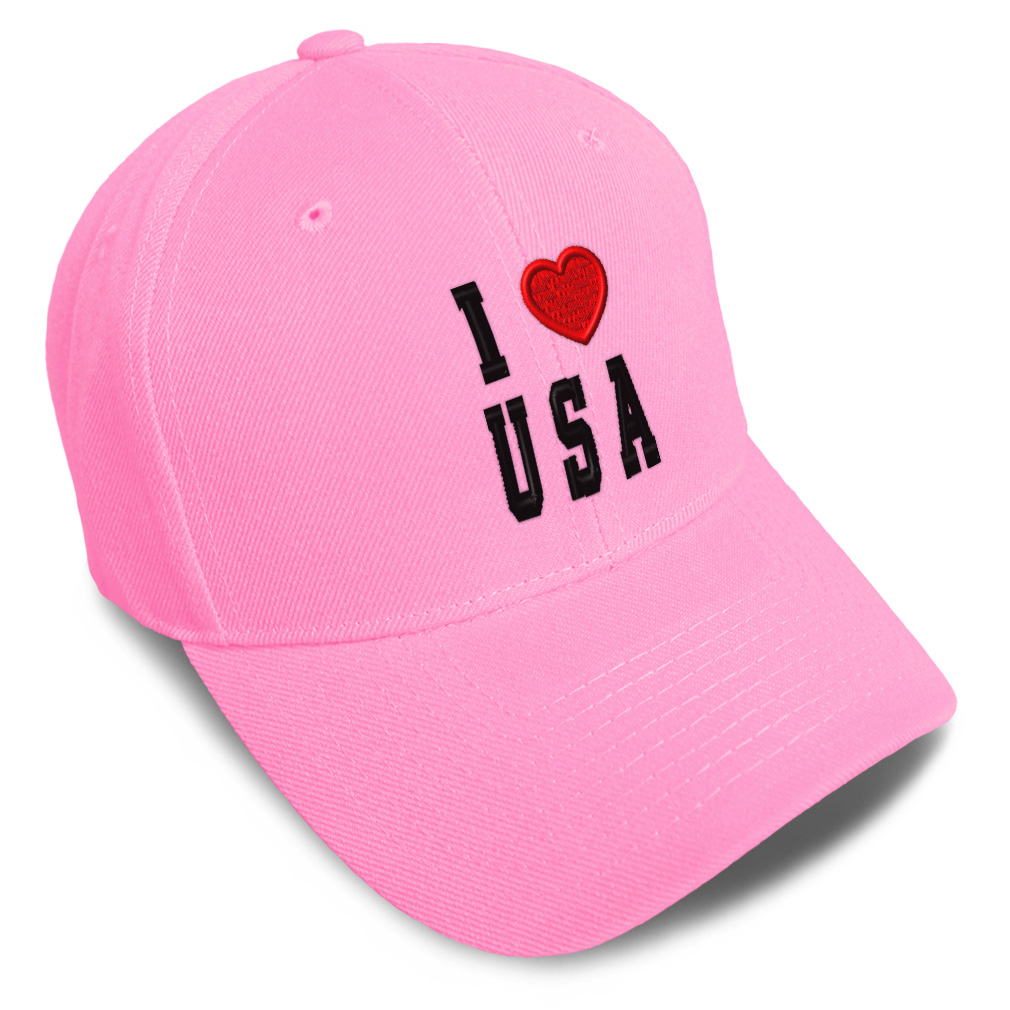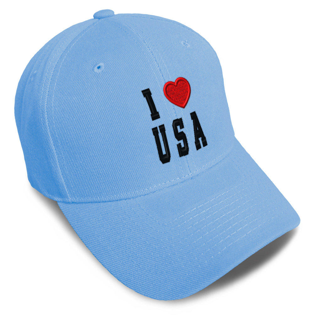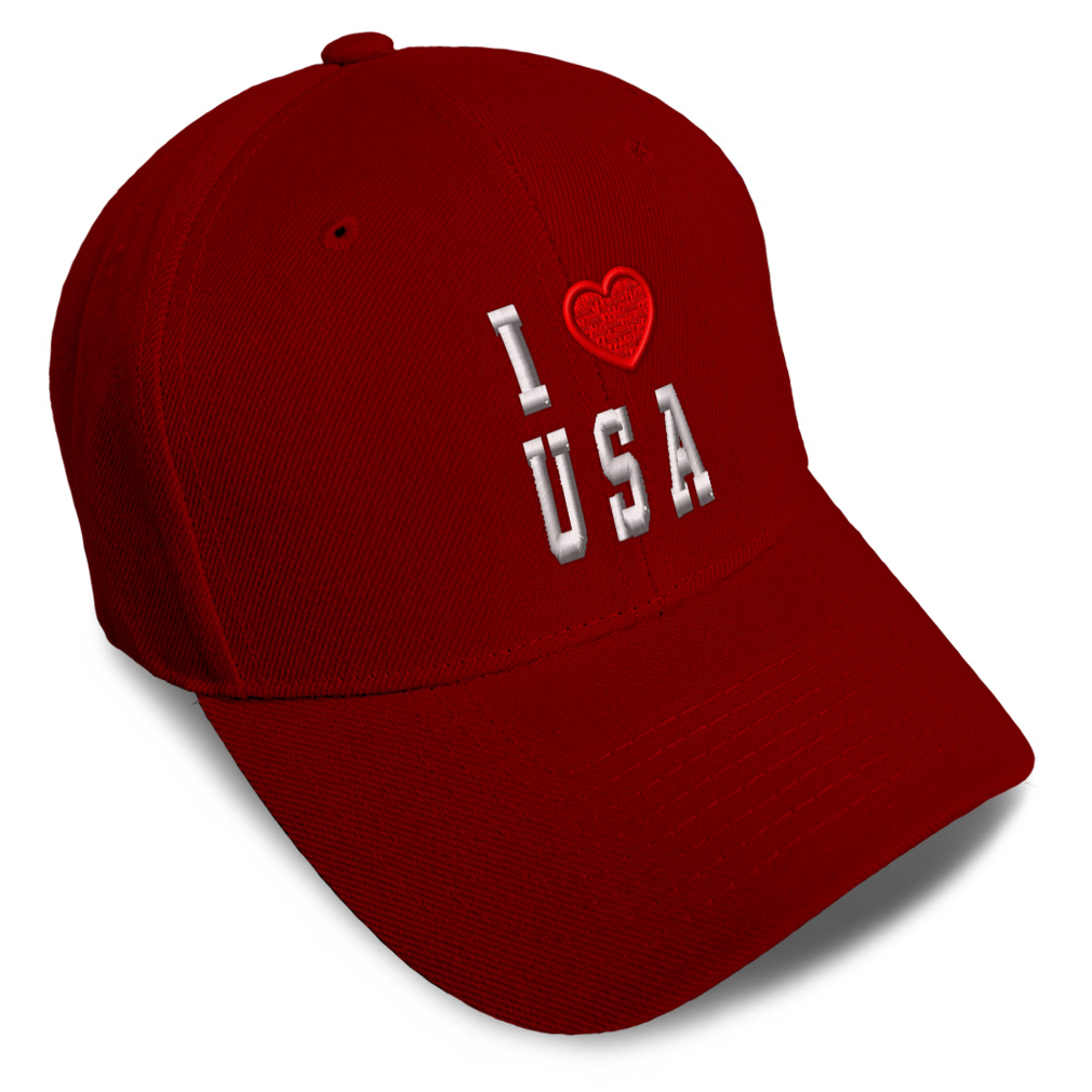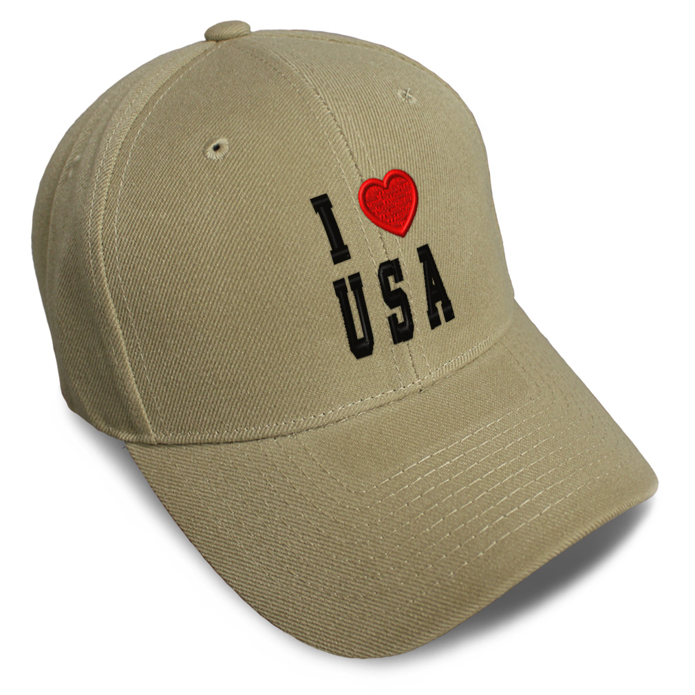 Unisex Structured Baseball Cap Classic never goes out of style! Our baseball caps will come everywhere with you and will take your outfit to the next level. Our caps are available in 18 colors, so we are sure you'll find the perfect one. GREAT GIFTS IDEA: Unforgettable and unique, our golf hats men and women are the perfect gift for birthdays, anniversaries, Christmas, Father’s Day, Mother’s Day or any other celebrations. Perfect for someone who is looking for USA hat, I Love baseball cap, United States mens hat, American hats for men, USA Flag dad hat, Country Love hats for women, Country Pride accessories, gifts for men, Love gifts for dad, gifts for husband USA apparel, I Love shirt. These mens hat and baseball hats for women are suitable for exercise such as running, casual outings to go to the beach, to work, to the club, to the mall or an everyday wear. You can make this mom hat or dad hat one of a kind with our custom option with thousands of designs available to you. Simply add your personalized text and choose among various fonts and colors! Our embroidery will continue to look great after many years, it is carefully made in our lab in Tampa, Florida. The design's text reads: i love usa. , PAYMENT TERMS