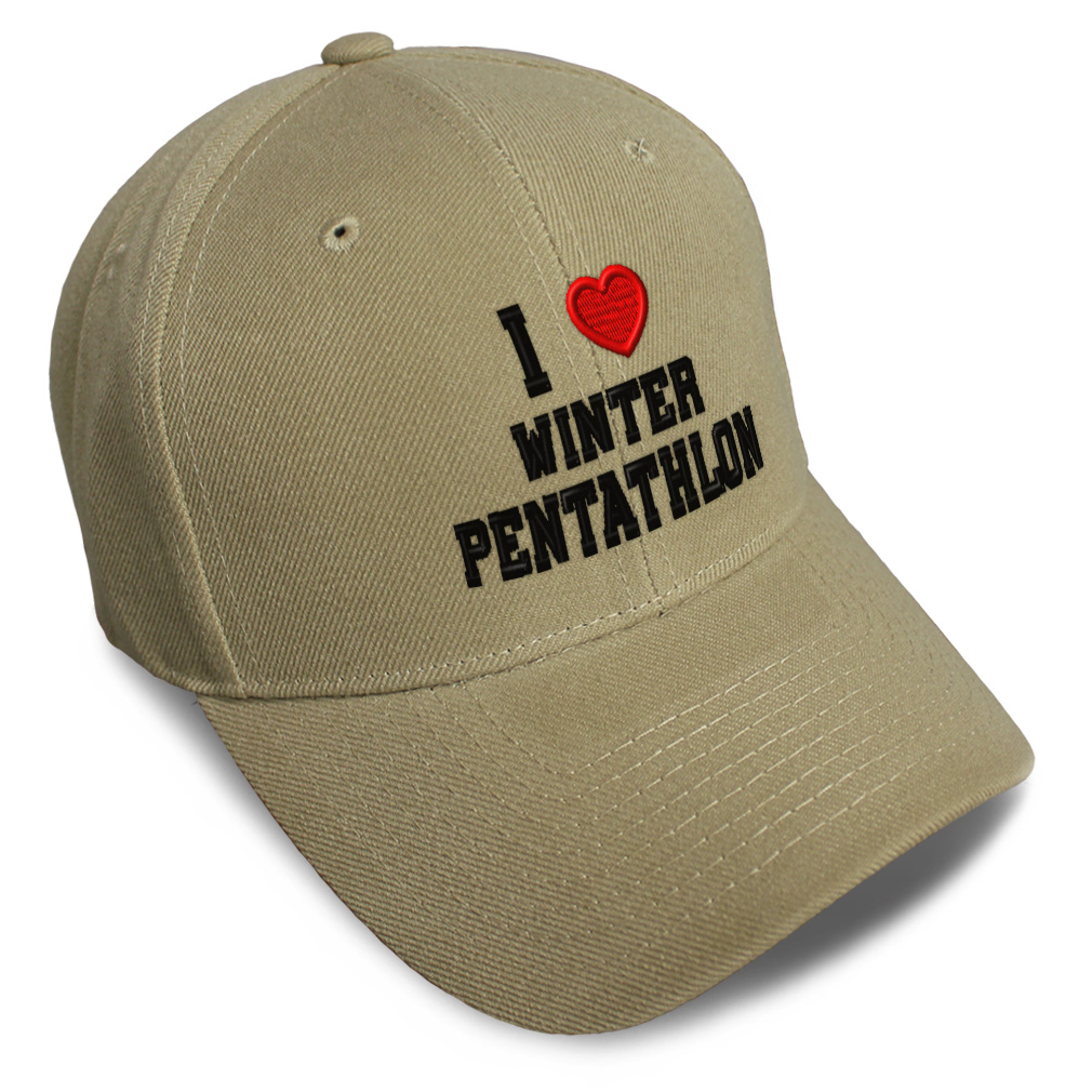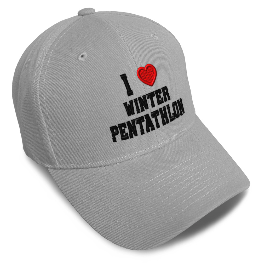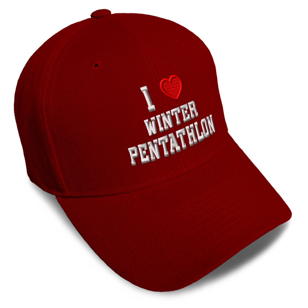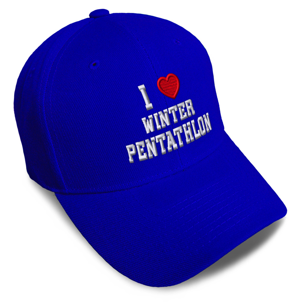 Unisex Structured Baseball Cap Classic never goes out of style! Our baseball caps will come everywhere with you and will take your outfit to the next level. Our caps are available in 18 colors, so we are sure you'll find the perfect one. GREAT GIFTS IDEA: Unforgettable and unique, our golf hats men and women are the perfect gift for birthdays, anniversaries, Christmas, Father’s Day, Mother’s Day or any other celebrations. Perfect for someone who is looking for Sports hat, Love baseball cap, Heart mens hat, Winter Pentathlon hats for men, Lovers dad hat, hats for women, accessories, gifts for men, gifts for dad, gifts for husband Sports apparel, Love shirt. These mens hat and baseball hats for women are suitable for exercise such as running, casual outings to go to the beach, to work, to the club, to the mall or an everyday wear. You can make this mom hat or dad hat one of a kind with our custom option with thousands of designs available to you. Simply add your personalized text and choose among various fonts and colors! Our embroidery will continue to look great after many years, it is carefully made in our lab in Tampa, Florida. The design's text reads: i (love) winter pentathlon red heart sports lovers. BEST CLASSIC BASEBALL CAP! ** , , , , PAYMENT TERMS
