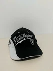 Baseball Cap - black and white with embroidered and printed lettering, adjustable strap, wide bill, vented, excellent condition, clean. B33