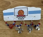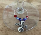 Basketball Wine Glass Charms, Four Piece Set Wine Charms, Basketball Wine Charms, Silver Plated Rings, Deluxe Wine Charms Deluxe Basketball Theme Wine Charms make a great gift for the Wine Drinker and the Basketball fan! One set available and ready to ship! I use silver plated loops. This deluxe four piece set features dark blue, pale blue and red faceted crystal glass beads. Donβt miss the deluxe resin domed Basketball charm! π β₯οΈππ©΅π·πΊ These will arrive in an organza gift bag with a hang tag to store and keep your set organized plus makes it easy to give as a gift! All my handmade items are made in my smoke free home! Handwashing is recommended. Custom orders are welcomed! #winecharms #basketball #basketballwinecharms #customordersavailable #youthbasketball #basketballplayer #coachgift #recreationalleague #highschoolbasketball #hoops #basketballplayoffs #menshoops #womensbasketball #basketballwinecharms