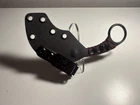 This semi-custom PiKa is a Doug Marcaida design produced by Bastinelli Knives, it features a chisel ground PVD hawkbill blade with notched thumbrest and swedge, .150" blade stock and .678" blade depth, full tang construction. The handle has a crimson Japanese Tsuka wrap, stablized with resin, and two bronze hand-polished Menuki. Comes with kydex sheath with Ulti-clip. Extremely light and concealable. It is 100% new, never used or carried. Note that the tip is not as pointy due to the nature of semi-custom chisel grinds; it's not damaged. Blade Length: 1.5'' Overall Length: 5.25'' Weight: (oz)1.6 Blade Material: N690 Sheath Material: Kydex