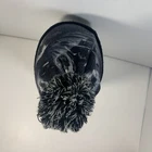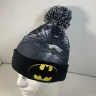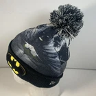 Batman black & gray New Era pom beanie, OSFM, 2016, The Dark Knight & bat symbol The tag says youth but it fits my big adult head just fine (size 7.5).