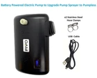 Pump spec: 5V, 1A; pressure >30PSI, flow rate: 0.8L/min. Pump size: 3"(L) x 4"(H) x 1.25" (W) Pump battery power: build-in rechargeable Lion battery. Charge pump battery with 5V wall charger (NOT included). One charge can spray over 80 minutes. DIY your sprayer by this powered electric pumping system. Enjoy the convenience of pump-less portable sprayer. Pump creates fine mist and can spray a good 10 feet when the nozzle is set to stream Easy two steps assembly operation takes less than 2 minutes. No special tool is required. Battery powered electric pump provides lightweight, low-noise and high-efficient solution to upgrade sprayer to pump-less. Don’t overfill liquid to tank and leave some space for air to prevent from vacuuming effect during pumping. Video on how to use DIY https://www.youtube.com/watch?v=glJPWf8hf88 or google "FIVO DIY" to find the video. For more items, please visit FIVO Store at: https://www.ebay.com/str/fivo