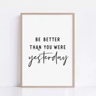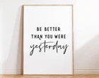 Be Better Than You Were Yesterday Poster Inspirational Quote Office Decor Printable Office Wall Art Wall Signs Material: Premium luster photo paper Print type: Inkjet printing One side printed + The finish provides the highest possible resolution and color saturation + Lasts up to 200 years in color and 400 years in black-and-white + Printed on high-quality resin-coated photo base paper medium + Posters can be hung with double-sided tape, tacks, or framed + Hand washing with a gentle cry cloth is recommended for extended durability I will hand select the best choice of paper for your chosen design to ensure top quality results for a beautiful, bright and luxurious print. All prints are sealed in cellophane slips for protection during transportation, and are shipped in a protective cardboard envelope.