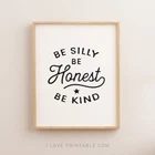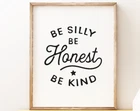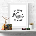 Be Silly Be Honest Be Kind Printable Art Black And White Art Nursery Wall Art Instant Nursery Print Nursery Decor Material: Premium luster photo paper Print type: Inkjet printing One side printed + The finish provides the highest possible resolution and color saturation + Lasts up to 200 years in color and 400 years in black-and-white + Printed on high-quality resin-coated photo base paper medium + Posters can be hung with double-sided tape, tacks, or framed + Hand washing with a gentle cry cloth is recommended for extended durability I will hand select the best choice of paper for your chosen design to ensure top quality results for a beautiful, bright and luxurious print. All prints are sealed in cellophane slips for protection during transportation, and are shipped in a protective cardboard envelope.