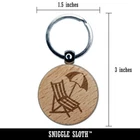 Beach Lounge Chair and Umbrella Engraved Wood Round Keychain Tag Charm