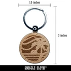 Beach Sunset Scene Tropical Ocean Engraved Wood Round Keychain Tag Charm