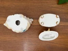 This adorable little set includes a votive holder and lidded trinket box and features a beach theme. Complete with conch shells, starfish, sand texture, and ocean water, this set is perfect for beach core. In good vintage condition with a small chip on the votive holder. Sold as is. See photos. Approximate dimensions are: votive 2.75" x 6" x 3.5". trinket box 3.5" x 3.5" x 3.75" Returns 30 days. Buyer is responsible for return shipping costs and any loss in value if an item isn't returned in original condition.