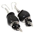 Beaded Black Onyx 925 Silver Plated Gemstone Earrings 2.5" Superb Gift JW