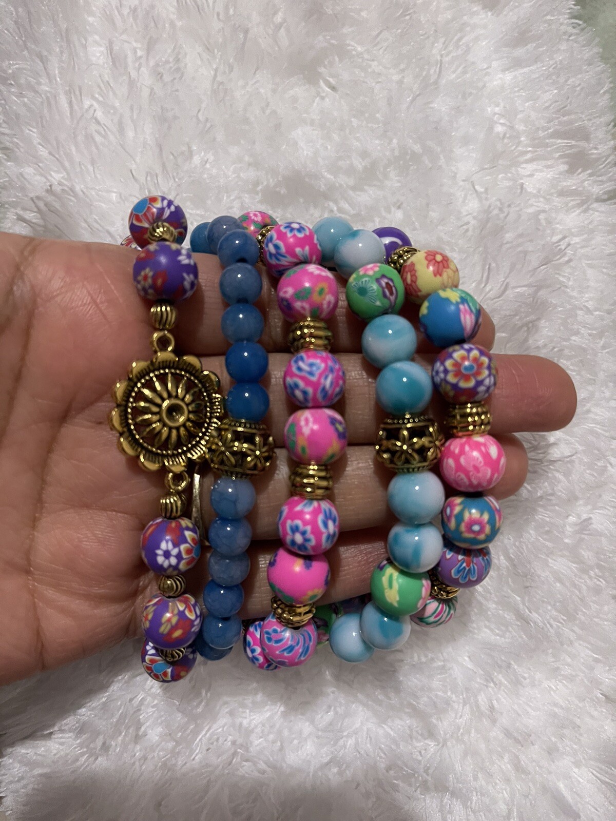 Style:Beaded, ElasticColor:Multi-ColorMetal:AlloyClasp Type:No ClaspMain Stone:UnknownUPC:Does not applyTheme:BeautyBase Metal:ElasticBrand:HandmadeCountry/Region of Manufacture:Unknowngtin13:Does not applyMaterial:Beads