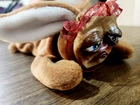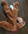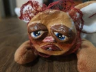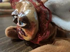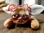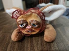 Beanie baby bunny that has been altered with a hand sculpted clay face. The face was hand crafted using clay and paint.