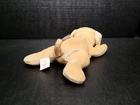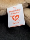 This Beanie Babies plush toy features Fetch the Dog from 1997. It was made in China and is part of the original collection. The toy is suitable for children aged 3-4 years and is from the popular Beanie Babies character family. It has been retired and is a sought-after item for collectors. The brand is Ty and it is a great addition to any collection. MWMT. Born February 4, 1997. Tush tag say 1998, Tush tag has star stamp, made with PE Pellets.