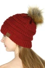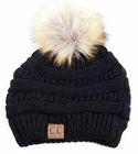 Faux Fur Pom Pom Stretchy Knit Beanie Skull Hat Winter Warm Chunky Thick Ribbed Knit Beanie Skull Pull Back Slouchy Ski Hat Cap Classic winter soft straight or pull back slouchy soft beanie. Large enough to wear over ears. Warm thick and stretchy. Great comfortable fit, fordable, furry pom pom will pop back into shape, just shake. Easy to pack, travel, vacation, resort, or pop it your your handbag or gym bag. Great for bad hair days. Will keep you warm, perfect for outdoor activities, or just looking stylish like a fashionista, all season all year round. Great quality. The Hottest Styles worn by Celebrities for men, women, youth and teens. Pair off with your favorite outfit. Will this be your favorite hat? A must have in all colors, patterns and prints. Makes a great gift. Hand wash cold, mild detergent and dry flat. Matching mitten and full fingered gloves and scarves available. Features: Fabrication: 100% Acrylic Size: One size fits most, unisex, men, women and teen Head measurement: 56 cm, 22 inches, Size 7 to 59 cm, 23 and 1/4 inches, Size 7 and 3/8 Flat measurement: 8 and 3/8 inches x 9 inches Faux furry pom pom: 4 and 1/2 inches x 4 and 1/2 inches Occasion: C.C original classic pom pom series matching chunky thick, solids, patterns, prints and multiple color knit beanie collection. Everyday stable hat to update your look. Perfect for the cool winter weather warm in the cold climates and comfy cozy fit. Commuters riding, car, bus, train, walking the dog, jogging, school, college campus, park, ball games, football stadiums, game day, concerts, snow, skiing, snowboarding, ice skating, camping, all outdoor activities. Matching scarf and gloves also available. Will never go out of style.