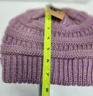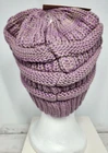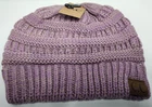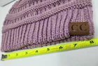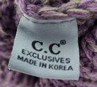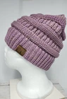Stay cozy and stylish with this beautiful Cable Knit Beanie by C.C. Made of soft and stretchy acrylic knit, this hat is perfect for any Winter or Fall occasion. The lilac w/dark beige accent will add a pop of color to any outfit, and the CC Logo accent gives it a unique touch. This one-size fits most beanie features a solid pattern and cable character, making it the perfect addition to any activewear outfit. Whether you're hitting the slopes or just running errands, this beanie will keep you warm and fashionable. Made in Korea, this beanie is brand new, in original packaging, and ready to be worn.