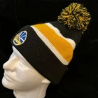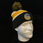 Show your support for the Golden State Warriors with this stylish NBA Knit Cuffed Hat Cap featuring the team's alternate logo featuring the basketball lines in white, background in blue and bridge in yellow. The hat is black and yellow, with white stripe. The logo and color was worn at times between 2011-2019. The beanie is perfect for basketball enthusiasts who want to show their love for the game and the team. It is made of high-quality acrylic and polyester that are both durable and comfortable to wear. Condition is gently used in very nice shape. Main brand tag was removed. Please ask any questions prior to purchase. Returns only if in same condition and unused. Thank you for looking!!