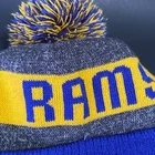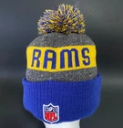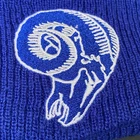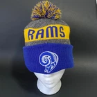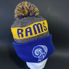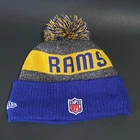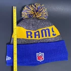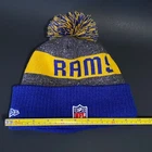 New Era Los Angeles Rams Beanie Hat Pre-Owned - Good Condition - One Size Fits Most - See pics for measurements Knit cap with pom - fleece lined - embroidered rams head + NFL + NE logos Blue/Gold/Gray colors Thanks for Shopping ! Item Ships from Los Angeles, California All Reasonable Offers will be Considered