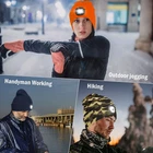 LED Beanie with Light - Unisex USB Rechargeable Hands-Free Headlamp Cap for Outdoor Activities - Warm Winter Hat and Flashlight Combo - Perfect for Hunting, Camping, Jogging, Auto Repair, and More - One Size Fits All - Built-in 4 SMD LED headlight with 120 Lumens - Up to 4 hours of continuous use or 6-8 hours of realistic intermittent use - Three brightness settings - Conveniently chargeable from any USB port, car charger, or portable power bank - No need to replace batteries - Great gift idea for both men and women. Specifications: Material: 100% acrylic Light Source: 4 LED lights Size: 7.28 * 7.87 inches Power Supply: 1 * Rechargeable Lithium Metal Battery (Included) Charging Time: Approx. 2 hours