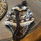 This beanie knit hat cap is designed for unisex adults in a one-size-fits-all brown color. It features ear flaps with tasseled accents for added style. Made of wool with a fleece lining, this hat is perfect for winter sports or outdoor activities. The mustard and olive color combination gives it a trendy look.
