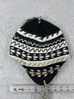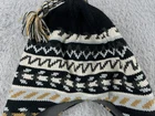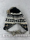 Beanie Toque Adult One Size Black Stripe Ear Flaps Lined Acrylic Poly Tassel Pom