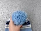 Beanie Toque Youth One Size Blue White Stripe Knit Acrylic Blend Outdoor Ski Pom