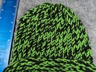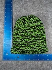 Beanie Toque Youth One Size Lime Green Black Stripe Knit Acrylic Blend Skate