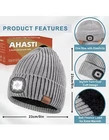 The product is a set of two beanies for men, each with a built-in rechargeable light. The headlamps are powered by USB and are designed for outdoor activities such as camping and hiking. The beanies provide hands-free lighting, making them convenient and functional for various purposes.