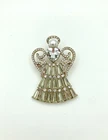This beautiful set of three guardian angel brooches by Napier is a must-have for any jewelry lover. Each brooch features a stunning round imitation pearl as the main stone, surrounded by sparkling rhinestones and intricate filigree details. The secondary stone is a lustrous mother of pearl/abalone, adding a touch of elegance to the design. The gold color of the brooches is perfect for any occasion and the angel shape is both beautiful and timeless. The brooches are perfect for adding a touch of glamour to any outfit, whether it's for a special occasion or just a day out. These brooches are a great addition to any jewelry collection and are sure to be a favorite. This item is used and may show signs of cosmetic wear. It comes with what is shown in the pictures. No other items are included. If you have a question or concern, please let us know and we will work with you to address the issue. All products are cleaned and sanitized. We strive for excellent customer service and stand behind our products.