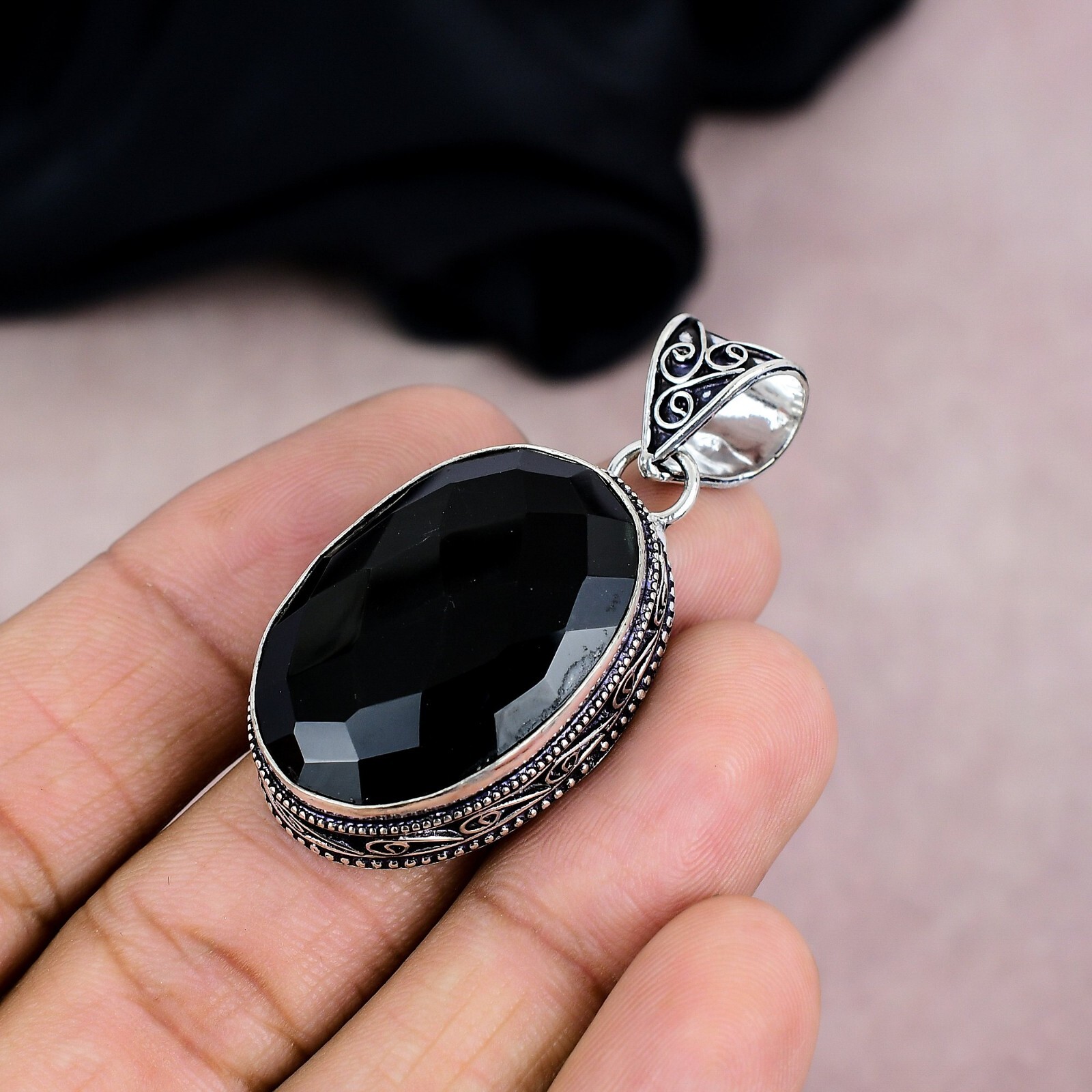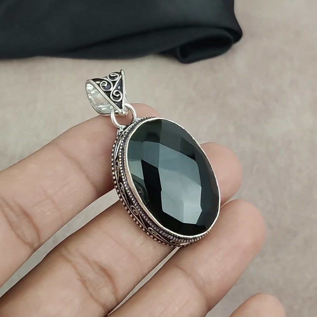 Beautiful Black Spinel Gemstone Pendant 925 Sterling Silver Handmade Jewelry