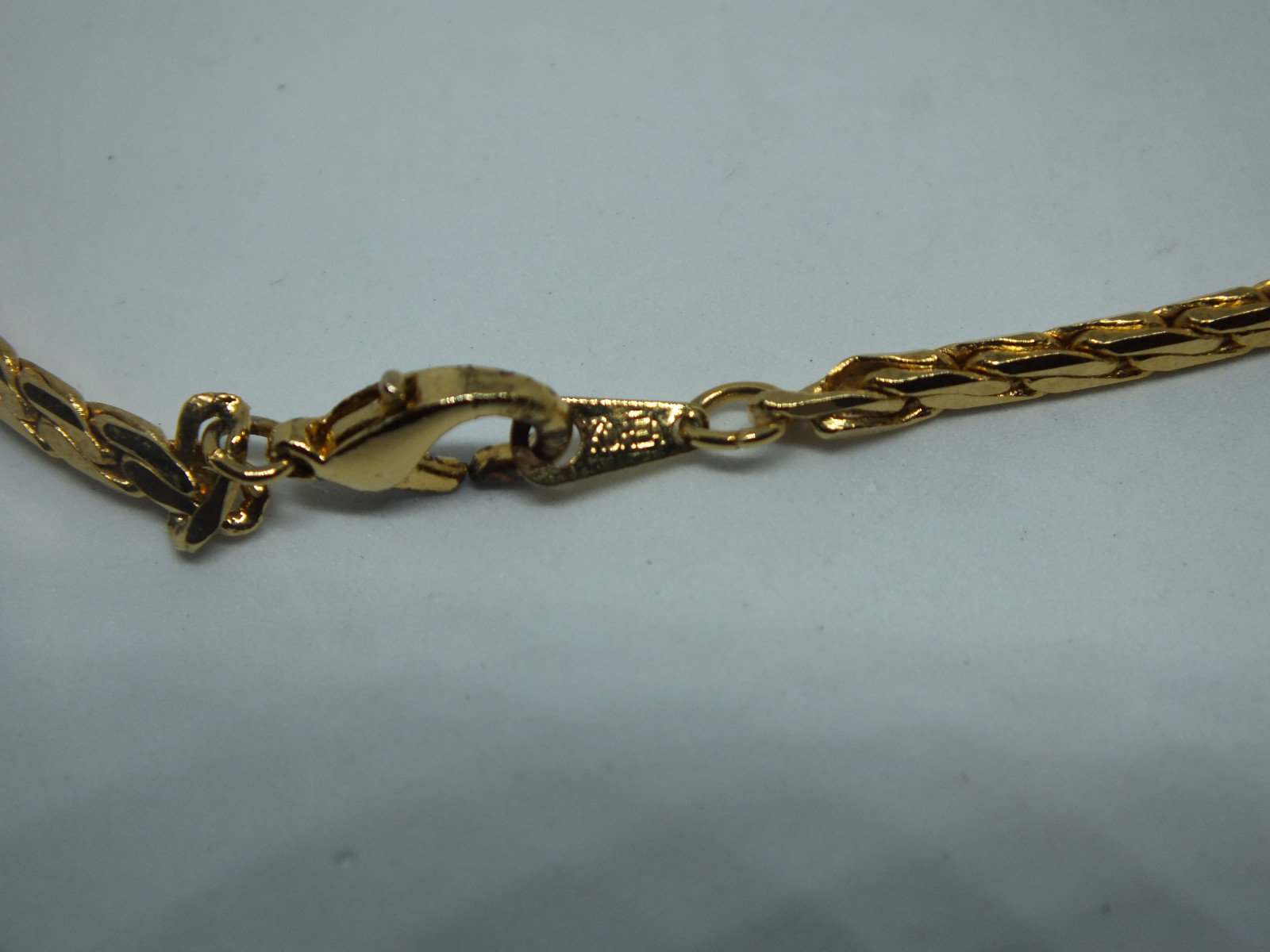 For you consideration is a beautiful necklace choker done in gold tone measuring 16 inches long by 1/8 inch wide. Great addition to your jewelry wardrobe. Very good gently used condition. Picture does not do justice. Comes with a gift box. Thanks for looking! Free shipping to the United States. Discounted shipping rate for International buyers purchasing multiple items. KEEP watching--I am always adding linens and have hundreds of pieces of jewelry I am trying to get listed.