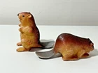 Beaver Plastic Figurine Wild Animal Unmarked Lot of 2 As Shown in Photos db81