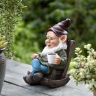 【Style】This smiling gnome is lying on rocking chair and holding a cup of coffee seems like is enjoying the coffee time, that brings a lot of vigour, funny and relaxation to your garden or home. 【Material】This gnome garden statue is made of high quality resin, hand painted, durable and weather-resistant. 【Size】7.3" x 4.7" x 5.9", 1.4 pounds 【Funny for Decoration】This funny gnome statue suitable for any places like home, kitchen, cafe, bar, outdoor garden, porch, patio, lawn, yard and so on. 【Package】packaged safely in the box to prevent damage during transportation. Ideal gift for gnome collectors, garden lovers, family and friends.