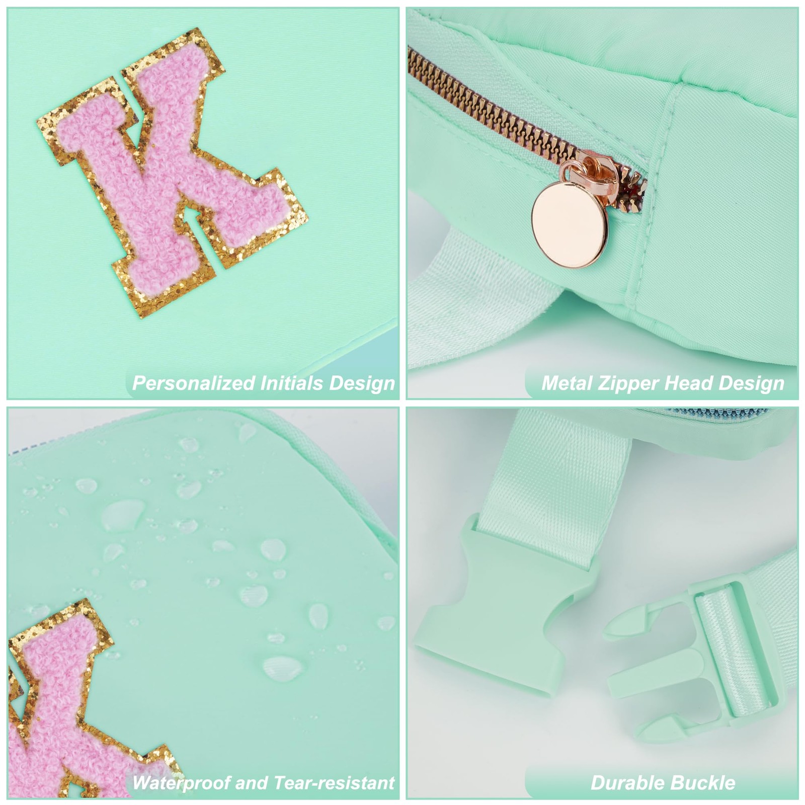Belt Bag EXCLUSIVE A-Z LETTER DESIGN: Each letter on the belt bag has a special meaning. Therefore, it makes a special personalized gift as well as a meaningful keepsake. Let your beloved know that she is the most important person to you PICK YOUR STYLE: The adjustable shoulder strap allows you to wear this fanny pack in a variety of ways. It can be used as a crossbody bag, waist bag, shoulder bag or handbag.This belt bag will make your outfit look chic HIGH QUALITY MATERIAL:Made of waterproof nylon material,but please do not immerse it in water.This fanny pack is designed with a round metal zipper head and personalized initials for a stylish and elegant look IDEAL GIFT FOR HER: These personalized belt bags are both stylish and practical.We highly recommend it as a special gift/present for women,girlfriends and girls on birthday,anniversaries,weddings,Thanksgiving,Christmas,New Year,Valentine's Day,Mother'Day FUNCTION: Our cute fanny pack is lightweight and easy to carry, roomy for , wallet, passport, keys and other small items,providing great convenience.Great for traveling or on the go