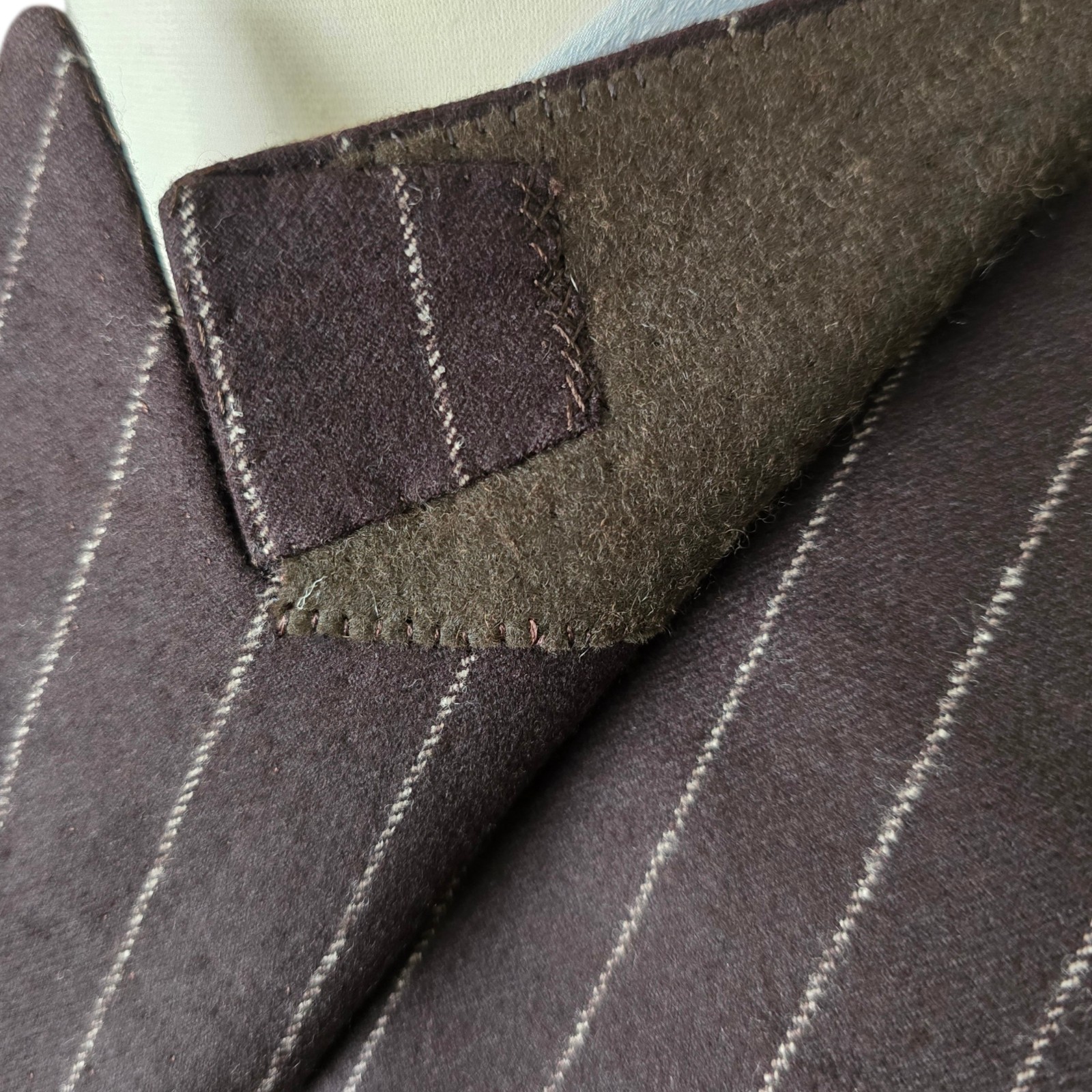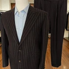 Size: 40rr USA with 24 inch arm length and a jacket length of 29.5 inches. Pictured on a size 40 mannequin. Pants: 35x29 relaxed leg **** Partito style of no rear pant pockets*** For complete measurements, see photos #2 and #3 About the tailor: Raymond Partito Custom tailor extraordinaire, crafting suits from scratch in everything from worsted wool to silk for high-profile clients like Sylvester Stallone and power attorney Jimmy Binns. Winner of the prestigious Fondazione Maestrelli gold medal Custom tailored for famous interior designer Bennett Weinstock Ralph Lauren himself told Bennett that he is always the best dressed man in a room. To see exactly how we measured, see the last series of photos. Extra fabric for adjustments: Arms: 1 inches Waist: 0.5 inches Inseam: 0.5 inches Fabric and Color: midweight chocolate flannel wool with chalkstripe like Condition: excellent vintage condition, coat hip pockets are still sewn shut. no flaws were found. No holes, no stains, no snags, moth ball smell Full canvas, working cuff, hand made/ hand tailored, hand sewn bottonholes, 5 inch wide peak lapel, ventless, light shoulder pads, pleated and cuffed, Return policy: We offer free shipping and no returns. We can not afford to offer both in the highest return category on eBay. It becomes very expensive to mail out items for free for people to try on if they are not confident in checking the measurements in picture #2. If you prefer to have the ability to return the item and pay $12.95 shipping, please send us a message, and we can change the listing format to offer returns. The $12.95 shipping cost would break us out even in the case you needed to return the item. You must contact us before purchasing as some of our items are on consignment and we will need to get the owners approval before proceeding. We ship the next business day after the payment is made. A discounted, expedited shipping option is available at checkout. If you need help figuring out how to buy a blazer or suit on ebay that actually fits you properly. There are some fantastic videos on You tub e