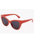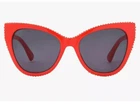 Details: New, unopened, in original packaging Betsey Johnson "Victory Red" cat-eye style sunglasses Tasteful red bejeweled accent around lenses Black lenses, 100% UV protection Plastic frames, 20% recycled plastic Retail: $38 Discounted Shipping Ships within 48 hours after purchase via USPS 2-5 business day shipping. Please ask any questions you may have before purchase. I would be happy to provide any additional details or pictures upon request. Thank you