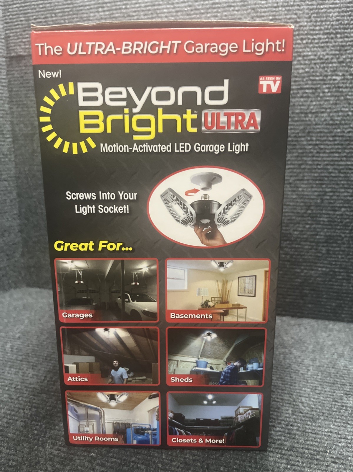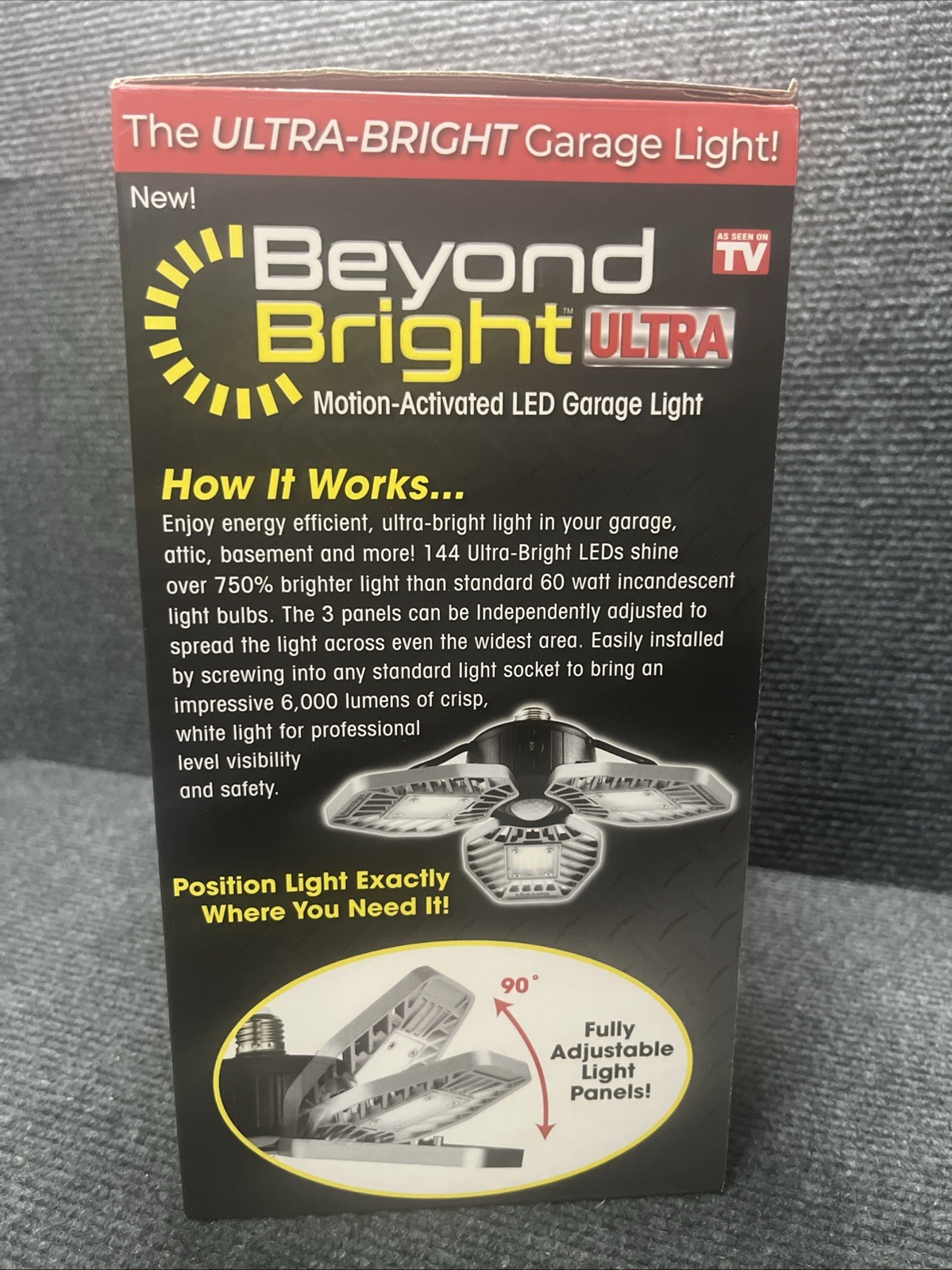 The Beyond Bright Ultra Motion Activated LED Garage Light is a high-powered lighting solution designed for indoor spaces like garages and workshops. With a brightness of 6K lumens and a color temperature of 6500 K+ Ultra Daylight, this contemporary-style light provides clear white illumination that is both bright and energy-efficient. Its easy installation process makes it convenient for adults to set up in their home or workspace. The light features a movement-sensitive sensor, dimmable control, and a brushed finish, making it a practical and stylish addition to any room.