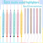 “----------------- WELCOME TO OUR SHOP -----------------” Product Name:Highlighters and Gel Pens Package contains: 6 Pcs Duo Tip Highlighters and 6 Pcs Gel Pens Product Color: Morandi colors Features: 1. Six highlighters and Gel pens each, plenty enough for you to use. 2. The highlighter is designed with dual tips, see-through chisel tip and fine tip, convenient for you to take notes. 3. The Gel pen is made of quick-drying ink, impermeable and very smooth writing. WIDE APPLICATIONS Such as color coding, journaling, memorizing bible or books, scripture marking, planner designing, note taking, or any book you want to read. Whether it's for school, college, home, office or traveling, these highlighters and ballpoint pens are the perfect companion for your writing needs. PACKAGE INCLUDES:6 dual-tip bible highlighters and 6 gel pens 0.5mm black, dual-tip highlighters come in a variety of colors, neon, Morandi colors, highlighters, and gel pens set for all your writing and marking needs. High-Quality Gel pens: Filled with high-quality gel marker Ink with a 0.5mm fine point with a smooth-tech mechanism with no dragging or scratchiness, which flows smoothly on paper. The quick-drying ink ensures smudge-free and clear work, maintaining the neatness of your notes and documents. MORANDI HIGHLIGHTER: Our aesthetic highlighters is designed with user comfort and ease of use in mind, providing a comfortable grip with a dual tip design, see-through chisel tip & fine tip for precise highlighting and underlining. HIGHLIGHTER & GEL PEN SET: Suitable for a variety of uses, color coding, journaling, memorizing bible or books, scripture marking, planner design, note taking, etc., or any book you want to read. Whether for school, college, home, office, or travel, these highlighters and ballpoint pens are the perfect companion for your writing needs. PRACTICAL GIFT: With their cute design and practicality, these highlighters and ball pens make wonderful gifts for family and friends. Suitable for occasions like birthdays, holidays, or as a thoughtful gesture, they are sure to bring joy and functionality to anyone's writing and highlighting experience.