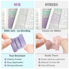š¦ćCOMPREHENSIVE BIBLE JOURNALING KITćDive into scripture exploration with our all-inclusive kit, featuring 75 vibrant colorful-inspired Bible labels tabs, 6 colorful Bible pens, and 12 no bleed Bible highlighters. Our kit offers everything you need to personalize and enhance your Bible study experience. šćEASY-TO-APPLY, DURABLE TABSćOrganize your Bible effortlessly with our 75 tear-resistant tabs for Bible, designed for durability and clarity. Our intuitive guide ensures easy application and perfect alignment on even the thinnest Bible pages. With our clear manual, secure and precise placement is guaranteed, guiding you reliably through your spiritual exploration. šćSEAMLESS WRITING EXPERIENCEćEnhance your Bible study with our set of 6 color assorted Bible pens, meticulously crafted for delicate Bible paper. Featuring no-bleed ink technology, our pens deliver crisp, smudge-free annotations while preserving the paper's integrity. Enjoy a seamless writing experience that brings your Bible notes to life with vibrant colors and enduring clarity, ideal for the thin pages of your Bible. šćNO-BLEED HIGHLIGHTERS FOR CLARITYćIlluminate your scripture annotations with 12 no-bleed highlighters, thoughtfully designed for use on delicate Bible pages. Our highlighters offer vivid, smudge-proof color without bleeding through, ensuring clear and lasting highlights that won't obscure the text on thin Bible paper. Dive into your Bible study without distractions, knowing your highlights will remain crisp and clear. šćESSENTIAL TOOLS FOR ALL BIBLE USERSćCrafted for both newcomers and seasoned scholars, our Bible journaling set features tear-resistant tabs, no-bleed pens, and highlighters, all designed for delicate Bible paper. Perfect for daily reading or gifting, these tabs add beauty and functionality to any Bible study or journaling practice.