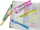 Bible Safe Gel Highlighters, set includes 6 eye-catching bright neon fluorescent colors (yellow, blue, green, pink, violet, orange) Won’t No Bleed through any paper including thin Bible paper. Archival quality will not fade or smear other inks Twist-up gel stick design. Glides smoothly across the page. Sharpened for a finer tip Perfect for Bible study, journaling, color coding, and so much more Set comes in a sturdy storage pouch with Bible color code Product Description